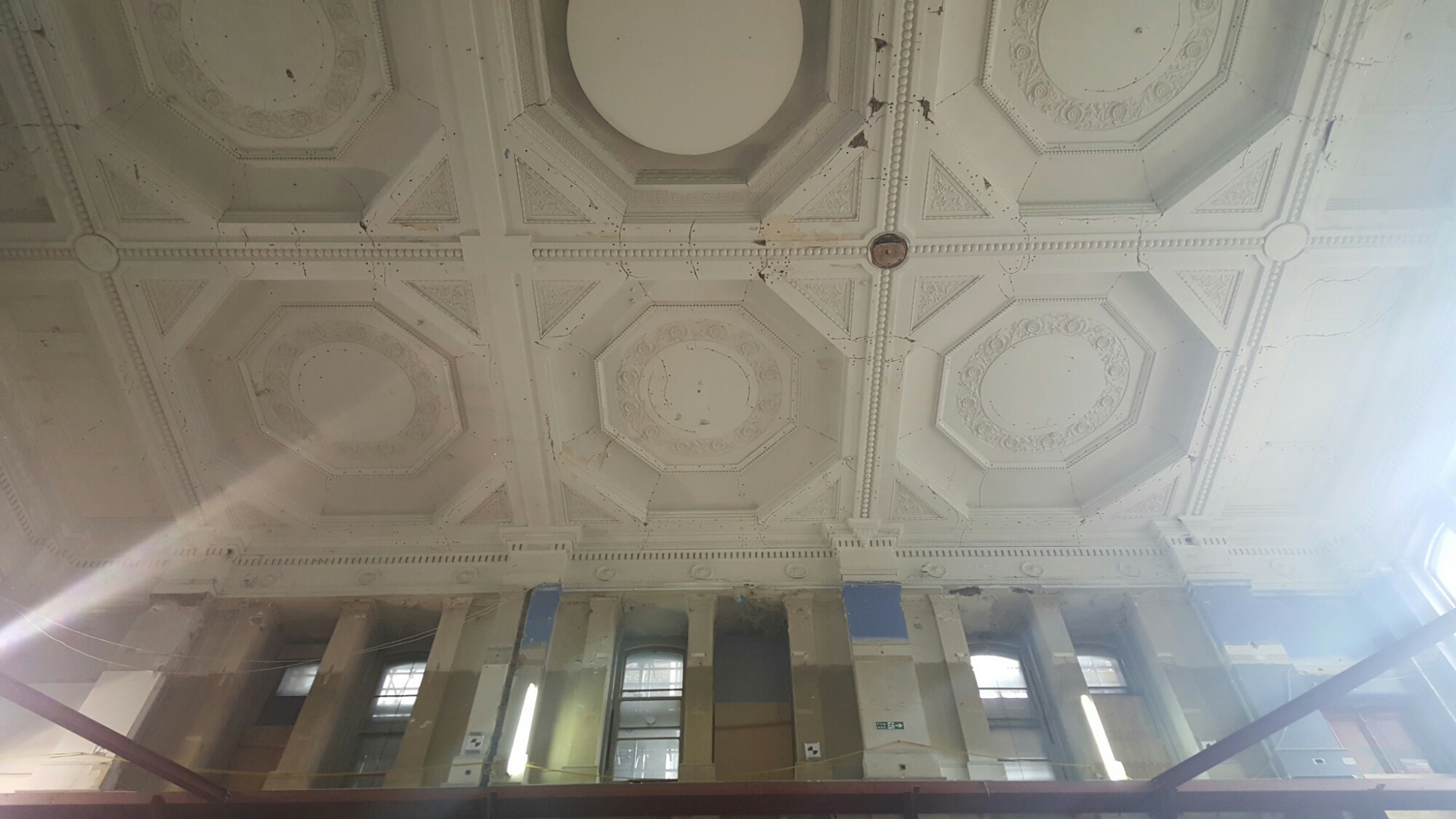 I poked my camera through a hole in the awning to take a photograph of the lantern over Sidney Smirke’s Octagon:-
