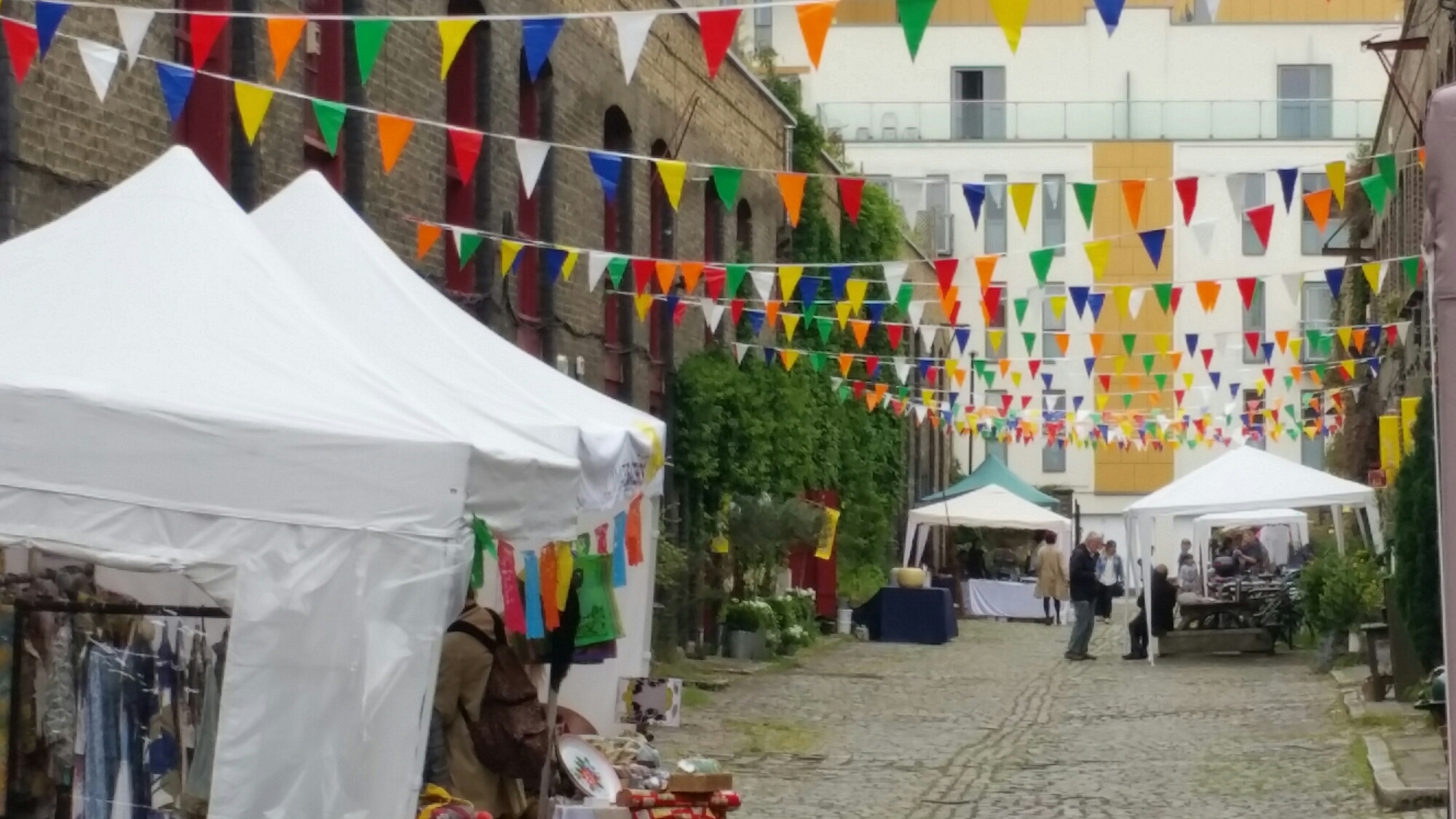 We made a short excursion this morning to see the Pullens Yard Open Studios, a bit of unexpected late nineteenth-century urban development just south of the Elephant and Castle where James Pullen, a local builder, created an estate of 12 blocks intersected by workshop yards, now occupied by a miscellaneous collection of artists, writers, clothesmakers and a florist, serviced by the Electric Elephant Cafe:-