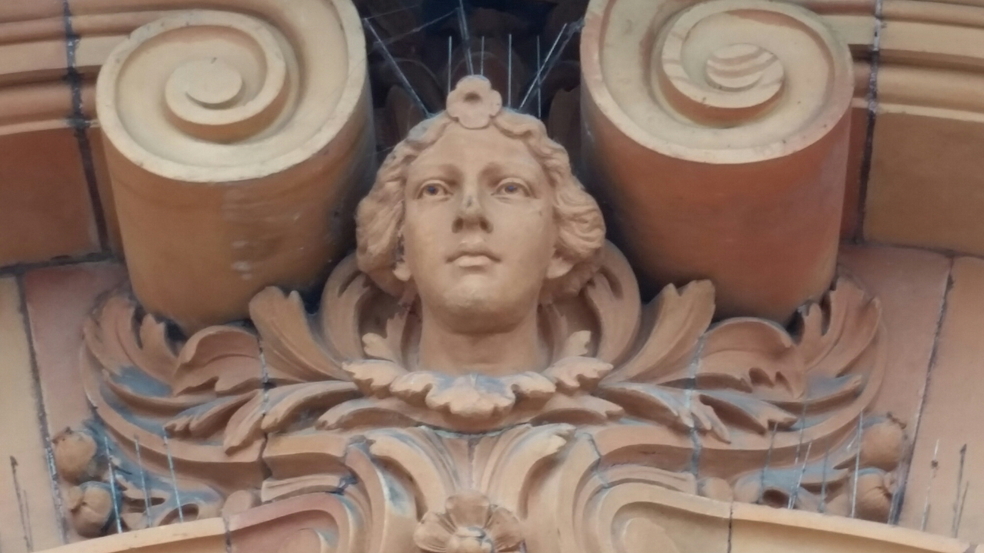 I would like to say that I enjoyed the Mostyn Art Gallery, but I didn’t. I have always regarded it as small, but perfectly formed, one of the nicest of the small regional galleries, with beautiful top-lit galleries and an admirable programme of exhibitions. Lottery funding has enlarged it and given it an odd, pseudo-Liebeskind entrance space, all diagonal lines and out of sympathy with the original, with a pyramid on the roof. But at least I liked the fine terracotta façade and it’s sculptural detailing:-
