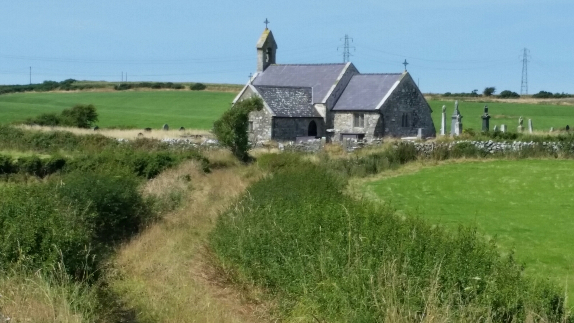 The church at Llanbeulan is, like Tal-y-llyn, looked after by the the Friends of Friendless Churches. Like Tal-y-llyn, it’s remote, reached by a track across fields, although the illusion of rurality is broken by the proximity of pylons:-
